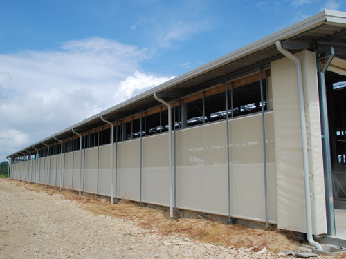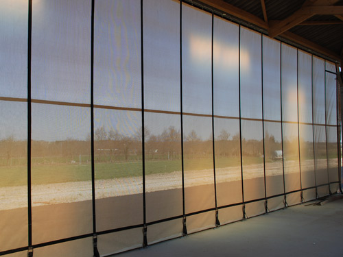 Cette marque allemande conçoit des protections contre le vent et des ensembles complets assurant des conditions ambiantes optimales à l'intérieur des étables. La gamme comprend des portes avec tablier en tissu ou des rideaux recouvrant tout un pan d'un bâtiment et pouvant être ouverts afin de permettre le passage; les différents produits sont fabriqués sur mesure. Les faîtages éclairants ventilés ne se contentent pas de laisser passer la lumière pour éclairer l'intérieur du hangar, ils assurent également un renouvellement permanent de l'air. Cette ventilation naturelle est optimisée à l'aide de ventilateurs à grand volume