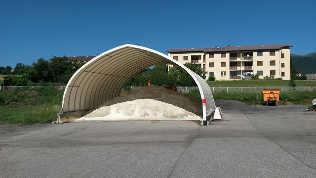 Tunnel posé sur plot béton ou sur dalle béton, destiné à tous les types de stockage : sel, sable, engrais, materiel BTP, recyclage, stockage produits vrac...