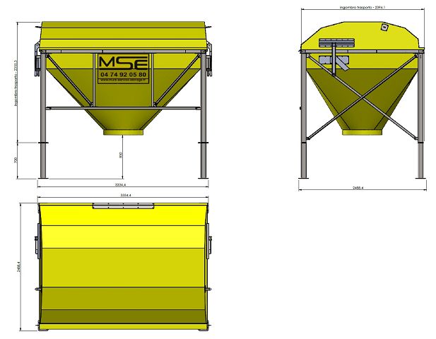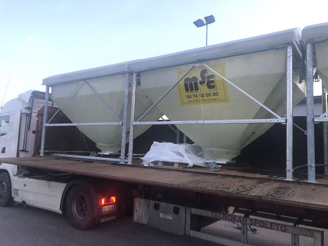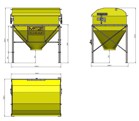Trémie rectangulaire pour stockage de granulés ou céréales.