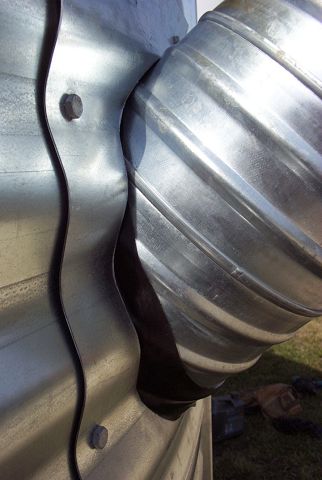 Cylindriques en tôle ondulée galvanisée épaisseur 0,75 mm et montants en acier galvanisé.